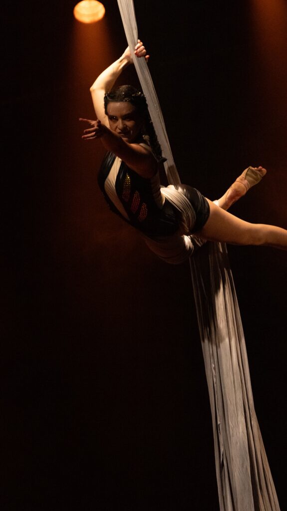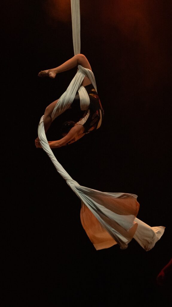 1 – Júlia, como você descobriu que queria fazer Tecido Acrobático? Sempre achei o tecido acrobático lindo, amava assistir apresentações em circos. Contudo, não imaginava que fosse uma prática acessível