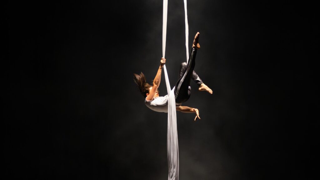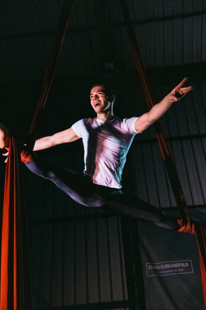 1 – Júlia, como você descobriu que queria fazer Tecido Acrobático? Sempre achei o tecido acrobático lindo, amava assistir apresentações em circos. Contudo, não imaginava que fosse uma prática acessível