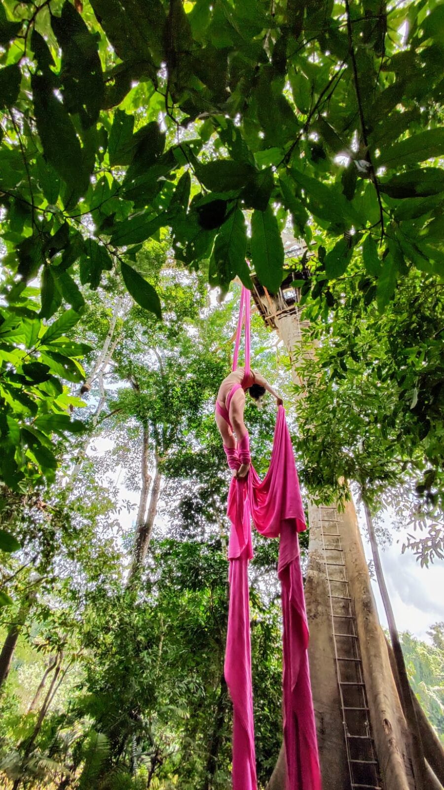 1 – Júlia, como você descobriu que queria fazer Tecido Acrobático? Sempre achei o tecido acrobático lindo, amava assistir apresentações em circos. Contudo, não imaginava que fosse uma prática acessível